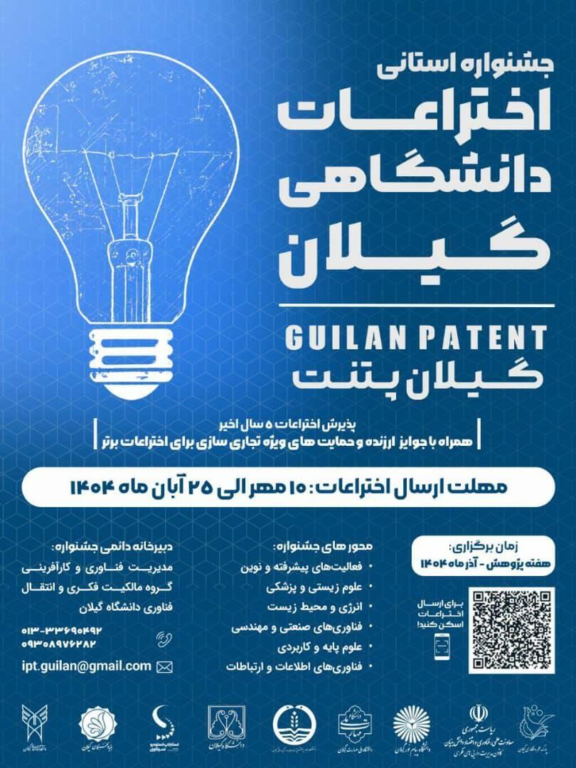 این جشنواره فرصتی ارزشمند برای شناسایی، معرفی و تجاریسازی اختراعات نوآورانه در سطح استان گیلان است و با هدف ایجاد ارتباط میان دانشگاه، صنعت و بازار برگزار میشود. برگزیدگان این رویداد از حمایتهای ویژه و جوایز ارزشمند برخوردار خواهند شد.