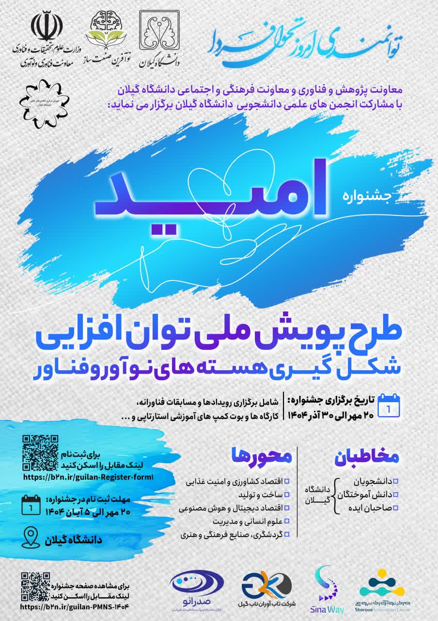 معاونت فناوری و نوآوری وزارت علوم، تحقیقات و فناوری با همکاری دانشگاه گیلان برگزار می نماید: