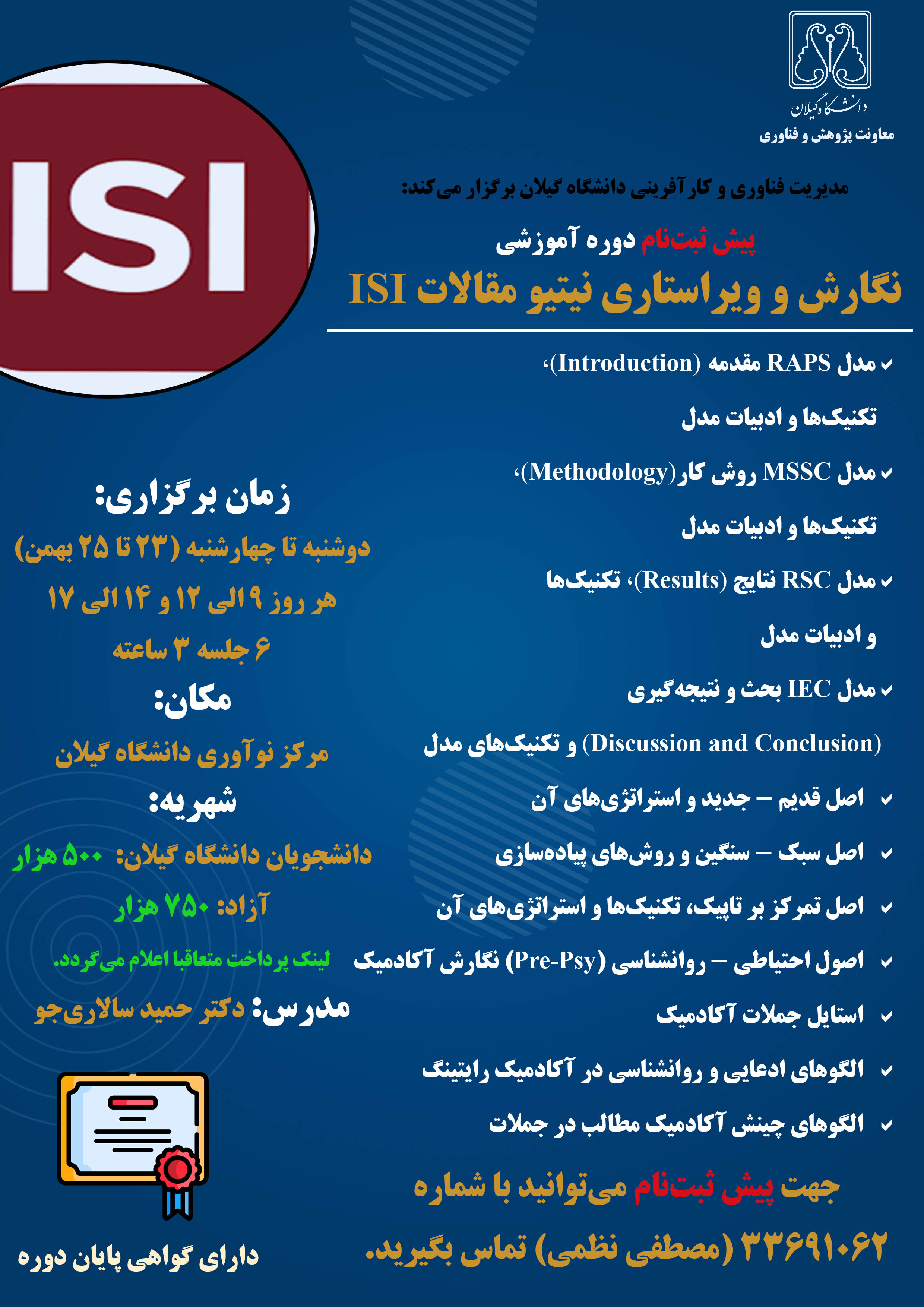 دوره آموزشی نگارش و ویراستاری مقالات ISI