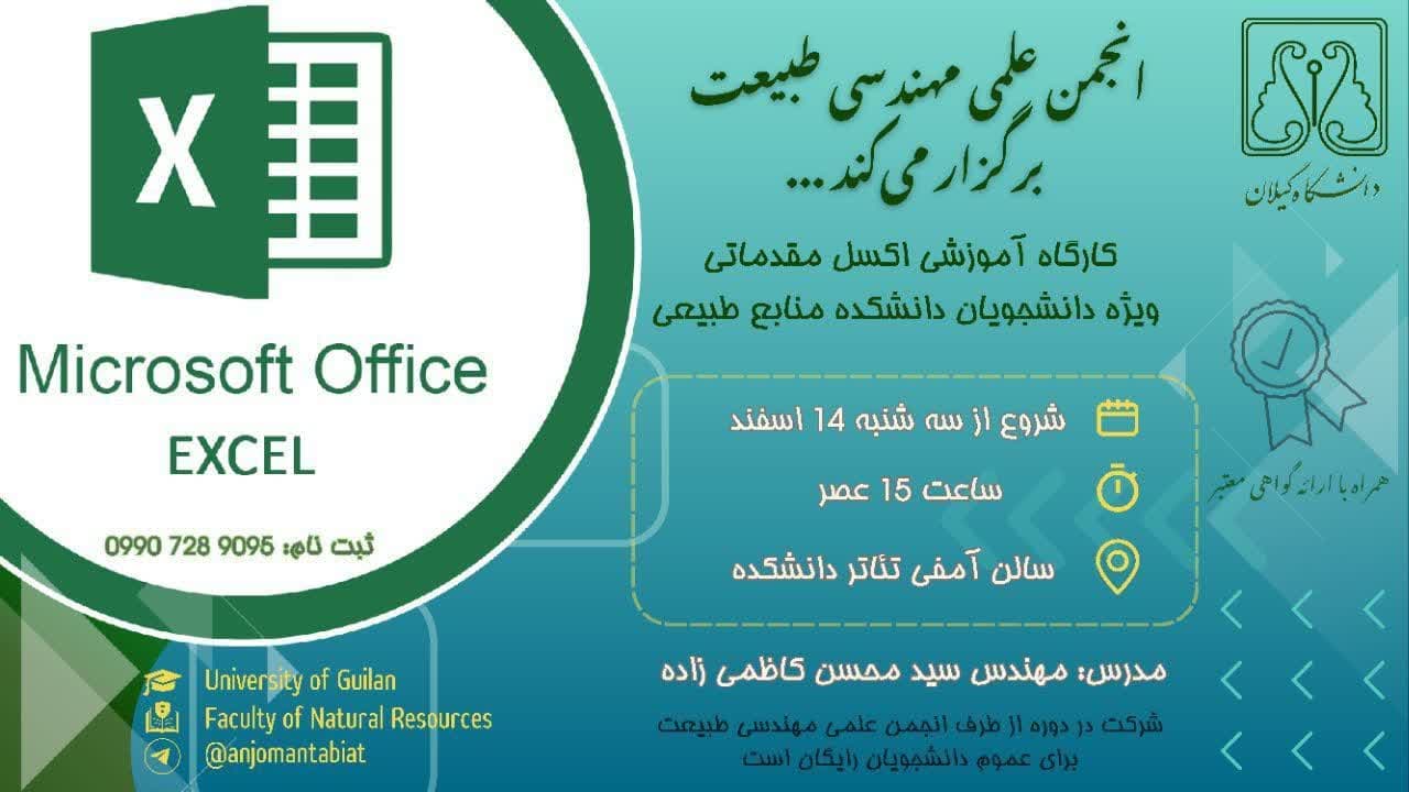 فراخوان کارگاه آموزشی اکسل مقدماتی ویژه دانشجویان دانشکده منابع طبیعی