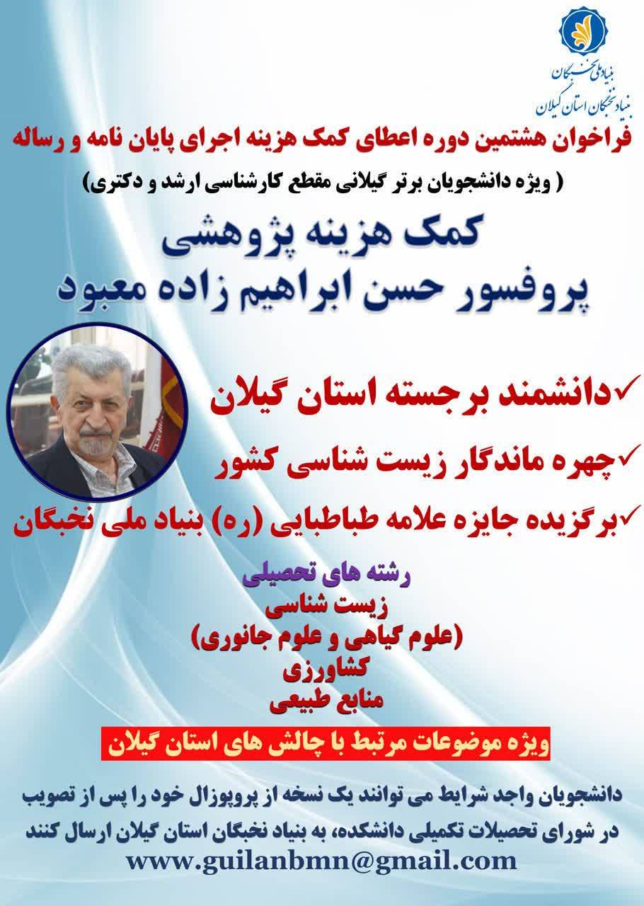هشتمین دوره اعطای کمک هزینه پژوهشی پروفسور حسن ابراهیم زاده معبود